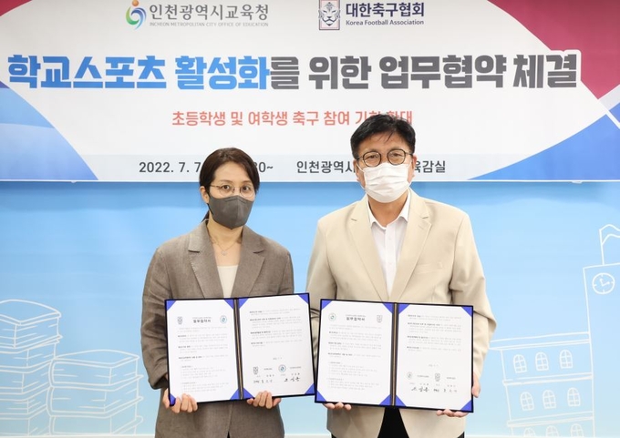 인천광역시교육청(교육감 도성훈)은 7일 대한축구협회(회장 정몽규)와 초등학생과 여학생의 체육활성화를 위한 업무협약을 체결했다.