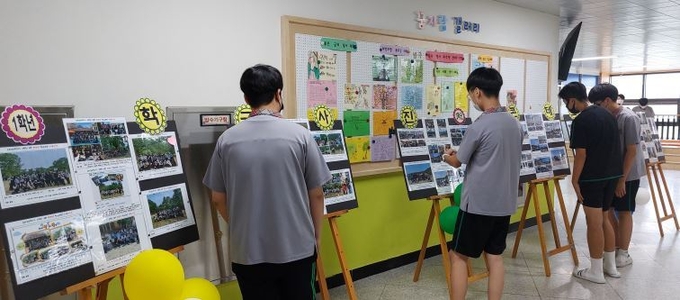 울산 북구 호계중학교(교장 최귀라)는 11일 아침 09:00부터 교육복지우선지원사업의 일환으로 1학기 동안 학생들이 가장 즐거웠던 수학여행과 수련회를 사진 작품전으로 열어 추억하는 ‘즐거운 학교 만들기 학급사진 콘테스트’ 이벤트를 가졌다.
