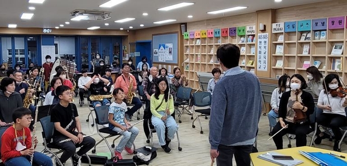 단원들은 오는 16일 열리는 창단 첫 연주회에서 노력의 결실을 맺는다. 행복마을 오케스트라 단장이자 음악감독을 맡은 주원배 씨와 지휘를 맡은 강예슬 창원 감계초등학교 교사, 박은주‧송성찬‧김지완‧장지용 행복마을 오케스트라 지도 강사의 역할도 컸다.
