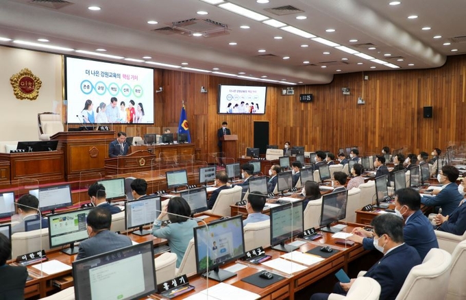 신경호 강원도교육감은 15일 강원도의회를 방문해 새로운 강원교육의 미래비전을 보고하며 도의회와의 소통 행보에 나섰다.