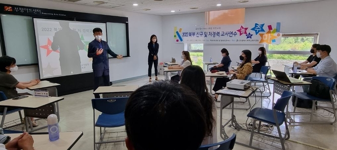 인천광역시북부교육지원청(교육장 전병식)은 14일 부평아트센터와 갤러리 꽃누리 에서 2022년 북부교육지원청 관내 중학교 신규 및 저경력 교사를 대상으로 ‘놀・아・주・마’ 연수를 운영했다고 15일 밝혔다.