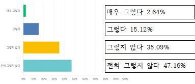 교육부는 개별 학교에서 개설이 어려운 과목은 온라인을 활용한 공동 교육과정으로 해결하겠다는 입장이다. 하지만 교사들은 소위 ‘온라인 고교’ 신설이 지역 격차 해소에 도움이 되지 않을 것으로 봤다. ‘온라인 고교 신설 방안이 지역 격차 해소에 효과적이라고 생각하는가’란 질문에 47.2%는 전혀 그렇지 않다고 응답했다. 그렇지 않다는 응답도 35.1%였다. 응답교사의 82.3%가 온라인 고교의 지역격차 완화 효과에 회의적 반응을 보인 셈이다.