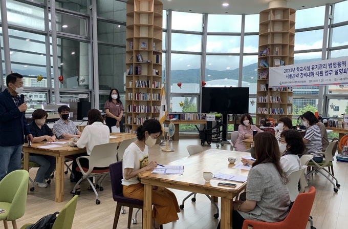 울산 강북교육지원청 학교지원센터는 지난 20부터 22일까지 관내 공립학교 행정실장 123명을 대상으로 2022년 학교시설 유지관리 법정용역 지원 및 시설관리 장비 대여지원 업무 설명회를 개최했다고 밝혔다.