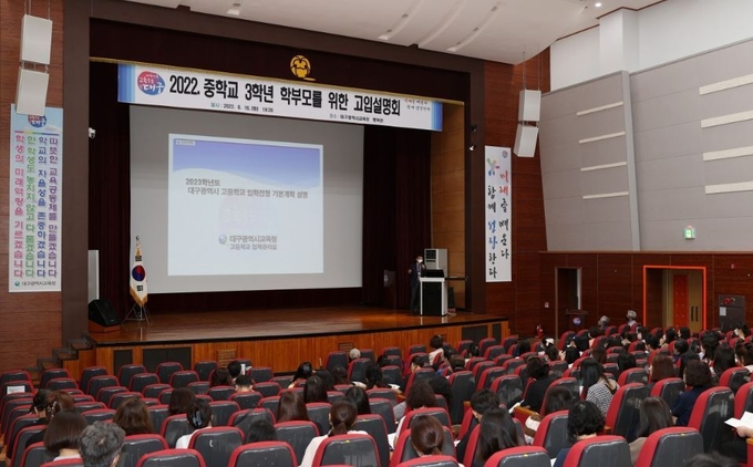 대구시교육청(교육감 강은희)은 8월 16일(화) 오후 6시 20분부터 시교육청 행복관에서 고등학교 유형 및 입학전형에 대한 이해도 제고를 위한‘중학교 3학년 학부모를 위한 고입설명회’를 개최했다.