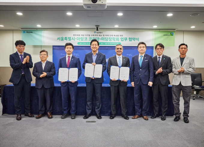 오세훈 서울시장은 오늘(19일) 오전 서울시청 영상회의실에서 아람코 코리아, 미담장학회와 ‘취약계층 대상 디지털 교육격차 해소 및 미래 인재 육성을 위한 업무협약’을 체결했다.