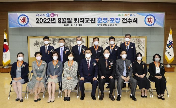 충청북도교육청(교육감 윤건영)은 30일(화) 14시 도교육청 화합관에서 2022년 2월말 명예퇴직과 8월말 정년퇴직한 교육공무원·사립학교 교원에 대한 훈장·포장 전수식을 개최했다.