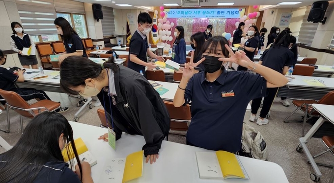 출판기념회는 김태헌 서부교육지원청 교육지원국장의 격려사로 시작해 학생 개개인에 대한 책 전달식으로 이어졌다. 이후 학생들은 배설화 교사(매천중)와 함께 지난 활동 과정을 돌아보고 자신이 쓴 책을 소개했다. 마지막으로 학생들 모두 한 자리에서 새로운 출발을 다짐하면서 저자 사인회와 단체 기념촬영으로 출판기념회를 마쳤다.