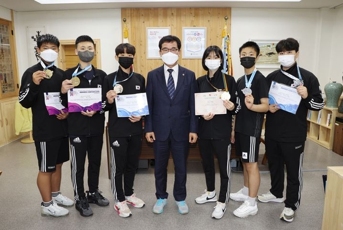 이와 관련 충북태권도협회 임원과 메달을 딴 학생들은 5일(월) 17시 20분에 윤건영 충청북도교육감 집무실을 찾아 교육감과 대화를 나눴다.