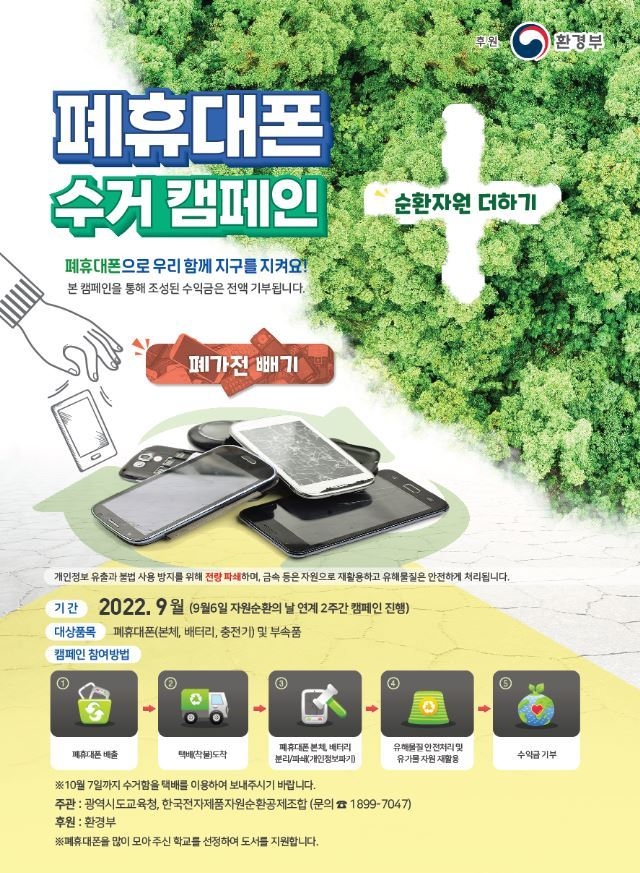 캠페인 참여학교는 자원순환 교육과 캠페인 활동을 실시한 후 폐휴대폰 및 전자제품을 수거 할 계획이다.