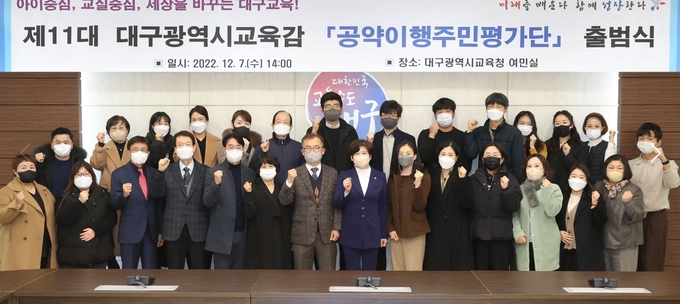 대구시교육청(교육감 강은희)은 12월 7일(수) 오후 2시 시교육청 여민실에서 제11대 대구시교육감 ‘공약이행주민평가단’(이하 주민평가단)의 출범식을 개최하고 평가위원들에게 위촉장을 수여했다.