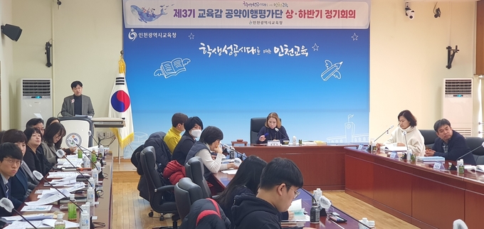 인천광역시교육청(교육감 도성훈)은 23일 영상회의실에서 2023년 하반기 교육감 공약이행평가단 정기회의를 시교육청에서 개최했다.