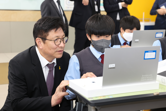 도성훈 교육감은 이날 학생들에게 노트북을 직접 전달하고, 디지털 교육 정책에 대한 의견을 청취했다.