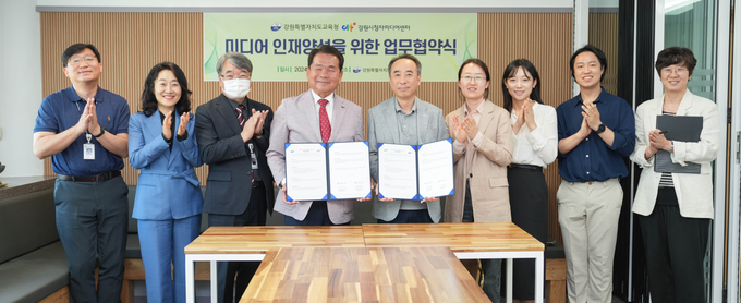 강원특별자치도교육청(교육감 신경호)과 시청자미디어재단 강원시청자미디어센터가 13일(월) 도교육청 2층에서 도내 미디어 인재 양성을 위한 업무협약을 체결했다.