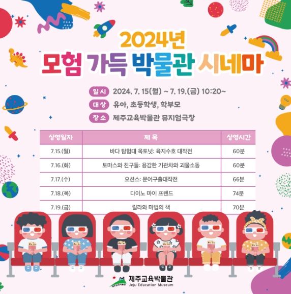 제주교육박물관 관계자는 “아이들이 모험 가득한 영화를 보며 즐겁게 상상력을 키우길 바란다”라고 말했다.