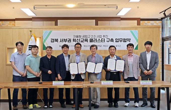 (아름다운교육신문) 율곡고등학교는 2024년 6월 17일 율곡고등학교(김천), 북삼고등학교(칠곡), 인동고등학교(구미)가 함께하는 경북 서부권 혁신 교육 클러스터 마련을 위한 업무 협약식을 진행하였다.