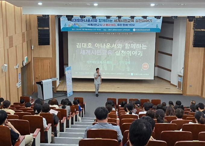 이번 연수는 군포의왕 관내 단위학교의 학생, 학부모, 교사 등 300여명의 교육공동체 대표들이 참석하여 요즘 ‘나 혼자 산다’의 프로그램 외 다양한 방송 출연으로 대중들의 큰 인기를 얻고 있는 김대호 아나운서와 함께 세계시민교육 실천 이야기를 나누며, 학교급별 학생, 학부모, 교사 등 교육공동체들 간 소통하는 자리를 통해 세계시민(학교민주시민)교육 실천 의지를 다질 수 있는 뜻깊은 시간이었다.