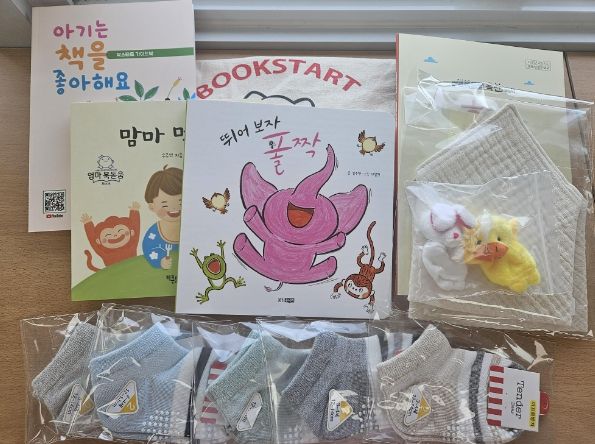 책꾸러미는 ‘책과 함께 인생을 시작하자’라는 취지로 옥천군 출생아에게 뛰어 보자 폴짝(김주현, 웅진주니어, 2023), 맘마 먹자! (우주선, 키큰도토리, 2023) 도서 2종을 포함해 부모 가이드북, 옥천군 생활정보안내 책자, 턱받이 손수건 2장, 유아 양말 5켤레, 손가락 인형 2종, 에코백 1종으로 구성됐다.