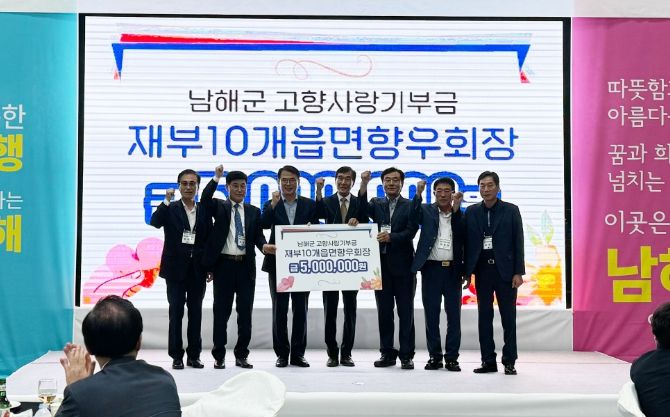 (아름다운교육신문) 남해군은 지난 14일 ‘재부 남해군 10개읍면 향우회장단’이 제19회 남해 마늘한우 축제 개최를 기념해 고향사랑기부금 500만 원을 기탁했다고 밝혔다.