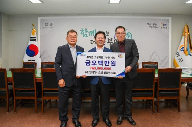 (아름다운교육신문) ㈜엔케이시스템 전중현 대표(공동대표 서천수)가 지난 18일 부여군에 고향사랑기부금 개인 최고액인 500만 원을 기부했다.