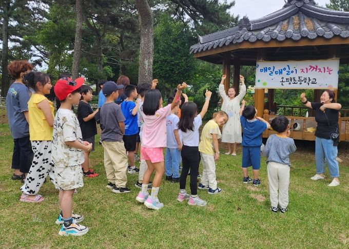(아름다운교육신문) 제주도교육청 온평초등학교는 학부모 학교참여 활동의 일환으로 초록동산 놀이 다모임 ‘매일 매일 지꺼지는’을 운영하고 있다. 온평초 뒷동산인 초록동산에서 놀이 다모임 형태로 이루어지는 이 활동은 6월 15일부터 12월 21일까지 매월 셋째 주 토요일마다 유치원부터 6학년까지 전교생을 대상으로 총 7회에 걸쳐 실시된다.