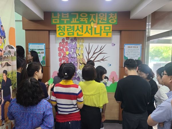 남부교육지원청 관계자 “청렴에 대한 전 직원의 다양한 생각을 공유할 수 있는 뜻깊은 시간이었다”며 “민원인과 함께 소통·공감하는 사업을 통해 청렴한 공직문화를 조성하고 모두에게 신뢰받는 교육행정을 펼치겠다”고 말했다.