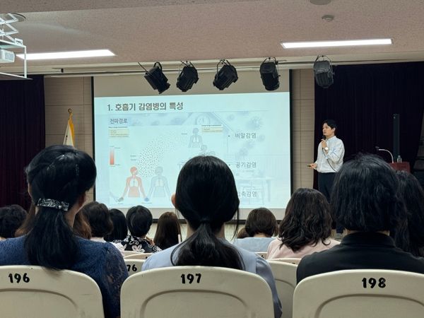 연수는 인하대학교 직업환경의학과 김형두 전문의가 ▶수인성 감염병 ▶수두 ▶결핵 ▶유행성 이하선염 등 학교 내 빈발 감염병 예방관리 및 역학조사의 흐름 이해와 대응법을 주제로 진행됐다.
