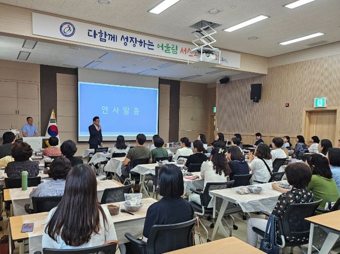 이번 특수교육지원인력 연수는 서산시 관내 유·초·중·고 및 특수학교 특수교육지원인력 60여명을 대상으로 원팀(One Team)으로 함께 걷기라는 주제로 긍정적 행동중재를 위한 지원방법과 원예 체험 힐링 연수를 통해 재충전의 기회를 제공하는 목적으로 진행됐다.