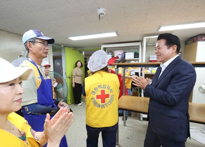 (아름다운교육신문) 최대호 안양시장이 19일 대한적십자사 봉사회 안양지구협의회(회장 이점숙)가 주관하는 ‘사랑의 여름김치 나눔행사’에 참석해 봉사자들을 격려하고 감사의 말을 전했다.