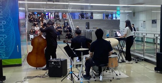 지난달‘재즈밴드 위더스’를 시작으로 6월에는 ‘모던국악밴드 탈피’가, 이후에는 ‘라틴 재즈 겟츠’, ‘국악밴드 초아’, ‘재즈 무드스페이스’, ‘음악그룹 결’까지 도시철도 역사 내에 격조있는 퓨전국악과 재즈 선율이 울려퍼지게 만들어 바쁘게 움직이는 시민들에게 뜻하지 않은 음악선물을 안겨줄 것이다.