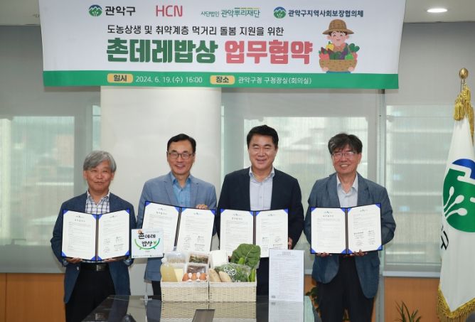 (아름다운교육신문) 관악구는 지난 6월 19일 HCN, 사단법인 관악뿌리재단, 관악구 지역사회보장협의체와 도농 상생과 취약계층 먹거리 돌봄을 위한 ‘촌데레 밥상’ 업무협약(MOU)을 체결했다.