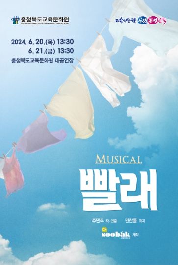 (아름다운교육신문) 충청북도교육청 직속기관 교육문화원은 20일, 21일 양 일간, 대한민국 대표 창작 뮤지컬 '빨래'를 기획공연을 중․고등학생을 대상으로 가졌다.