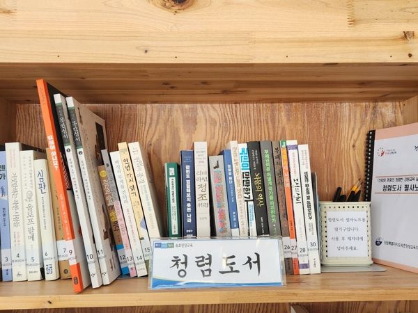 또한, 청렴도서 코너에는 청렴도서를 읽고 쓰며 청렴 의지를 다짐할 수 있도록 필사를 위한 노트와 필기도구도 비치되어 있다.