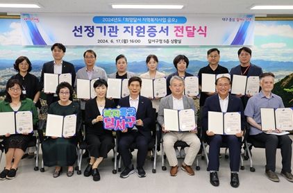 (아름다운교육신문) 대구 달서구가 17일 구청 5층 상황실에서 2024년도'희망달서 지역복지사업 공모'에 선정된 12개 기관에 지원증서 전달식을 열었다.