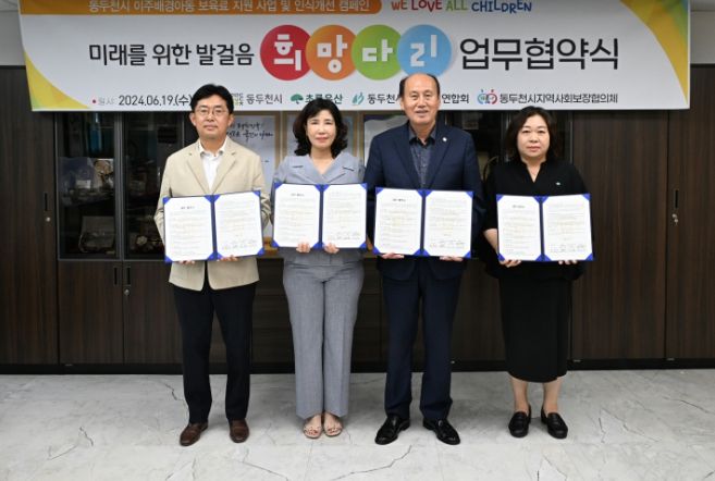 (아름다운교육신문) 동두천시는 19일 초록우산, 동두천시 어린이집연합회, 동두천시 지역사회보장협의체와 함께 이주배경아동 지원을 위한 업무 협약을 체결했다.