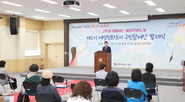 인천시 중구는 지난 19일 중구청 월디관 대회의실에서 ‘제2기 여성친화도시 구민참여단 발대식’을 열고, 공개모집으로 선발된 제2기 구민참여단 단원 32명에게 위촉장을 수여했다.