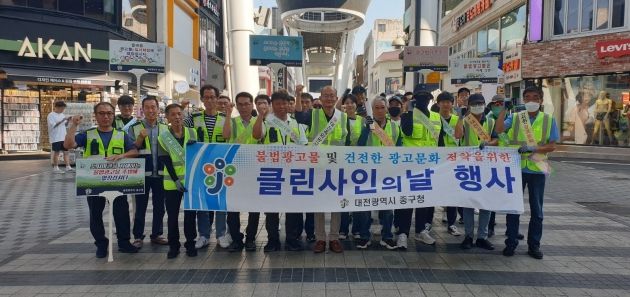 (아름다운교육신문) 대전 중구는 지난 19일 은행동, 대흥동 일원 상점가 밀집지역에서 옥외광고물에 대한'Clean·Safety-Sign'의 날 캠페인을 실시했다고 밝혔다.