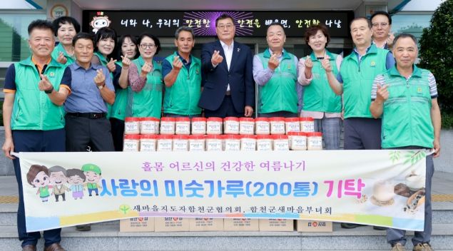 (아름다운교육신문) 새마을지도자합천군협의회(회장 배영효)와 합천군새마을부녀회(회장 이선숙)는 20일 합천군청을 방문해 어려운 이웃을 위해 미숫가루 320kg(1.6kg, 200통)을 기탁했다.