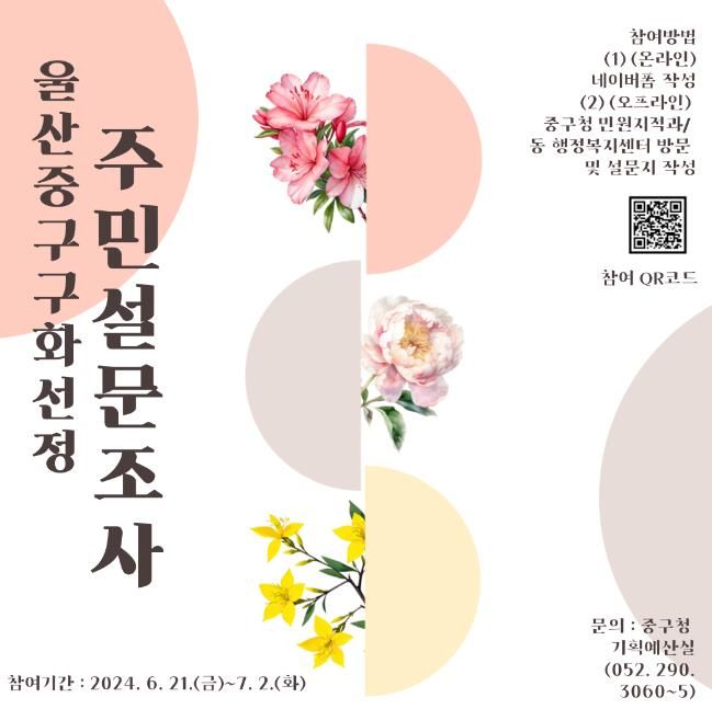 (아름다운교육신문) 울산 중구가 새로운 ‘구화(區花)’를 선정하기 위해 주민 설문조사를 실시한다.