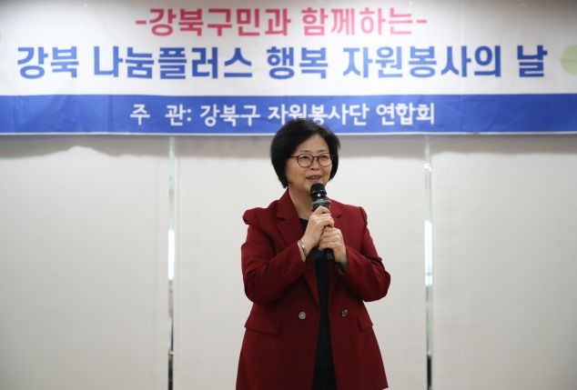 (아름다운교육신문) 이순희 서울 강북구청장이 20일 삼양동주민센터에서 열린 ‘강북 나눔플러스 행복 자원봉사의 날’ 행사에 참석했다.