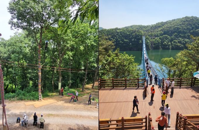 자기성장 교직원 연수 ‘트레킹과 트리클라이밍’은 진천 농다리에서 자기주도적 트레킹을 통해 전국 최장 출렁다리인 미르 309, 맨발 숲 황토길, 하늘다리 등을 걷고, 문백면 옥성리에 위치한 깊은숲속놀이터(힐링플레이)에서 트리클라이밍 활동을 실시한다.