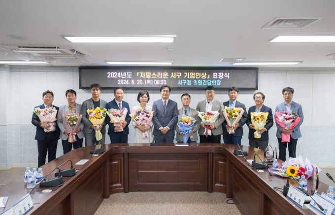 (아름다운교육신문) 인천 서구는 지난 20일 서구청 의원간담회장에서 관내 기업인의 자긍심 고취 및 사기진작을 위하여 2024년도 상반기 『자랑스러운 서구 기업인상』을 시상했다고 밝혔다. 이번 시상식에는 탁월한 경영능력으로 기업의 경쟁력을 높이고 지역사회발전에 기여한 모범기업인이 선정됐다.