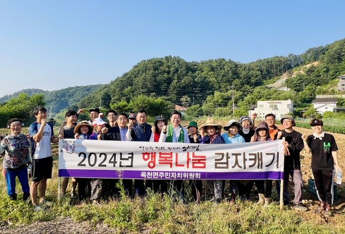 행복나눔 감자캐기 행사는 옥천면 주민자치위원회 위원들이 마을 소재 텃밭에 직접 감자를 파종하고 키워 수확하는 행사로 2015년도부터 매년 진행하고 있다.