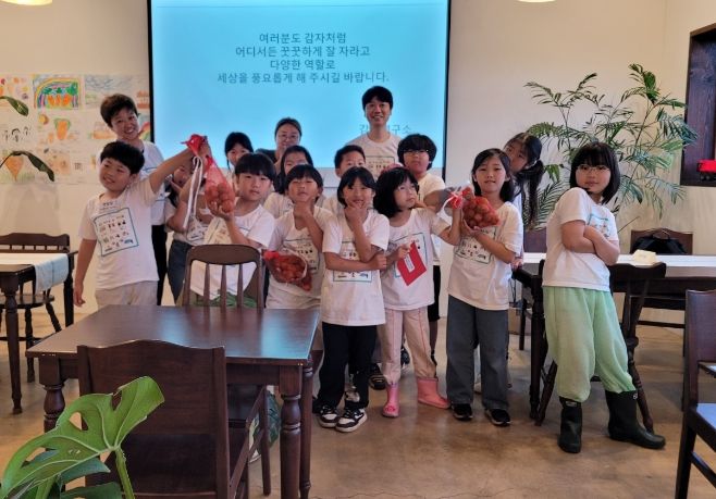 ‘감자연구소’는 3, 4학년 어린이들이 창의적체험활동 동아리 시간에 감자를 심고 가꾸고 수확하여 먹기까지 하는 체험형 노작 교육활동이다. ‘감자연구소’는 감자의 싹을 어느 방향으로 심으면 감자가 잘 자랄지에 대해 연구했는데 심은 감자보다 팀별 약 2배의 수확을 얻으며 감자는 어느 방향으로 심어도 잘 자란다는 결론을 낼 수 있었다. 또한 우리가 수확한 감자를 직접 먹어보며 농부들에게 감사하는 마음도 가질 수 있었다.