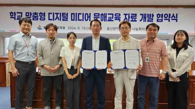 울산교육청은 지난 19일 시교육청 나눔회의실에서 울산시청자미디어센터와 학교 맞춤형 디지털 미디어 문해교육 자료 개발 업무협약을 체결했다.