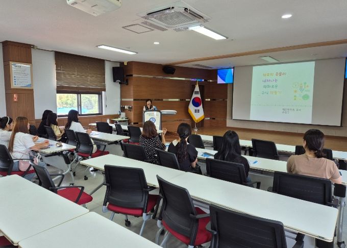 (아름다운교육신문) 충청남도태안교육지원청은 6월 20일, 태안교육지원청 대회의실에서 ‘행복한 웃음이 넘쳐나는 평화로운 교실 만들기‘를 주제로 연수를 진행했다. 이번 연수는 2024 태안 유치원교사 전문성 신장을 위한 총 6회기 연수과정 중 5회차 연수다.