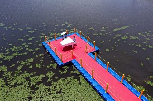 그 가운데 전시 분야 ‘물 위의 피아노’가 눈에 띈다. 강진읍내 보은산 V랜드공원 고성제에 마련한 전시 공간이자 포토 존이다. 이번 축제의 핵심 콘텐츠다. 꼭 들러야 할 포인트다.