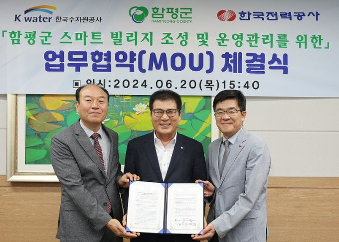 (아름다운교육신문) 전남 함평군이 20일 K-water·한국전력공사와 함께 전국 최초로 스마트 기술적용 특화마을 조성을 위한 업무협약을 체결했다.
