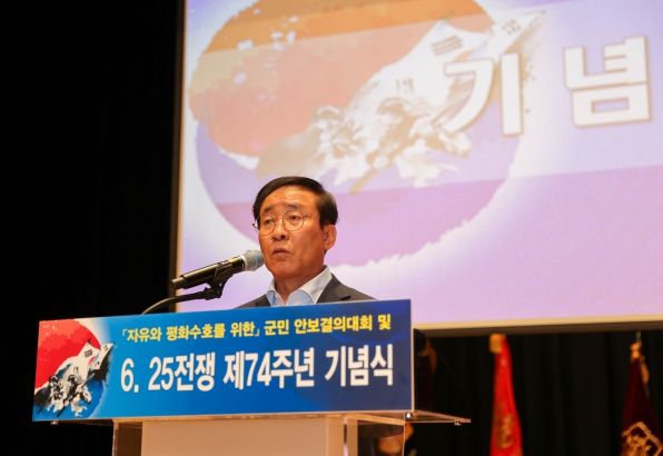 (아름다운교육신문) 단양군은 지난 25일 단양군 문화예술회관에서 보훈안보단체 회원 및 군민 200여 명이 참석한 가운데 ‘6.25전쟁 제74주년 기념식 및 자유와 평화수호를 위한 군민 안보결의 대회’를 가졌다.