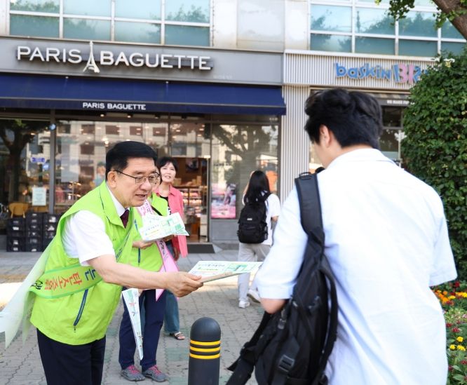 구로구청 사거리에서는 ‘도림천을 사랑하는 시민의 모임’이 에코마일리지와 온구로 앱 가입을 홍보했다. 문헌일 구로구청장도 팔을 걷어붙이고 주민들에게 안내문을 나눠주며 홍보에 동참했다.