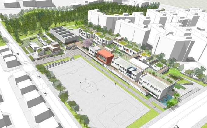 그동안 제주특별자치도교육청에서는 학교 신설을 위해 국내 유사 사례 조사, 교직원, 학생, 학부모(지역주민 포함) 대상 설문조사 및 주민설명회의 의견을 바탕으로 사전기획을 마치고, 지난 5월 설계공모를 통해 녹지와의 연계성과 시각적 개방성이 높은 ㈜범건축종합건축사사무소와 ㈜가람영산건축사사무소의 공동작품을 당선작으로 선정했다.